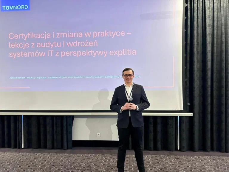 Organized by TÜV NORD Polska, this event provided an exceptional opportunity to exchange experiences in the field of management systems. Adrian Stelmach, CEO of explitia, shared his insights and professional experience, presenting a case study on process digitalization and building a culture of change based on IT/OT integration.