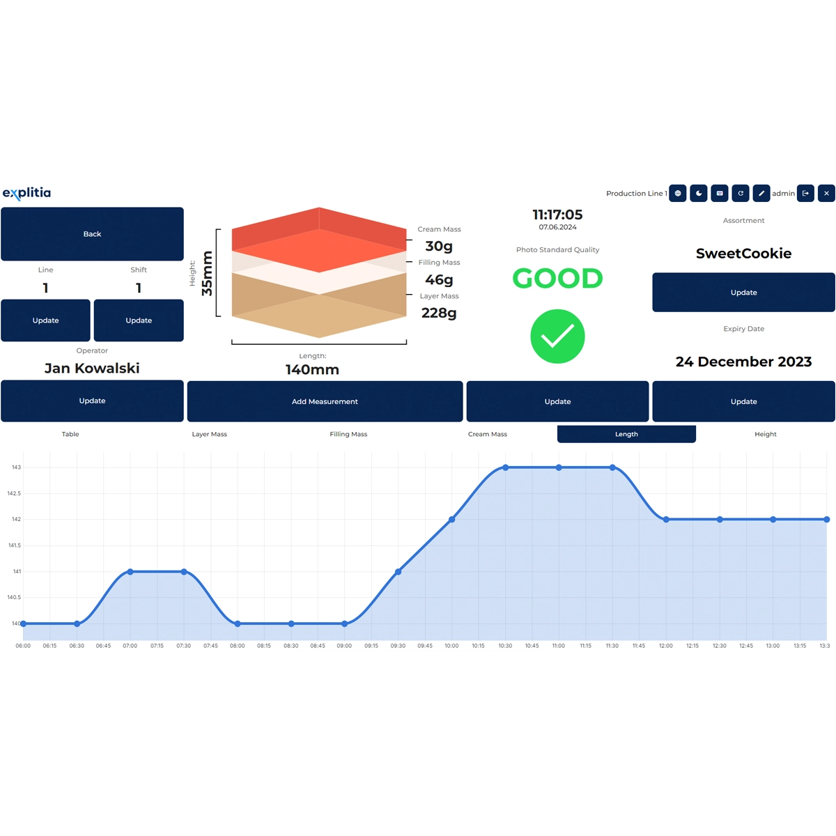 The Production Portal monitors measurements and operating parameters from equipment and machines. It lets you review historical data, track production stages, monitor raw material availability, and send alerts when something needs attention.