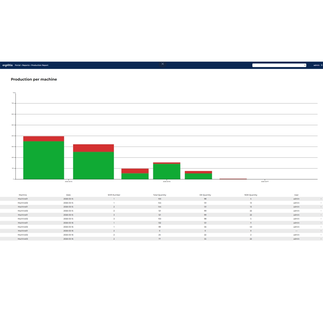 The Production Portal collects and stores process data, then presents it in clear summaries and indicators. Reports can be generated automatically from current and historical data.